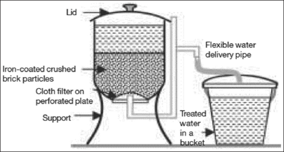 The bucket treatment unit, developed by the DPHE-DANIDA project and improved by the Bangladesh University of Engineering and Technology (BUET), is based on coagulation, coprecipitation, and adsorption processes.
