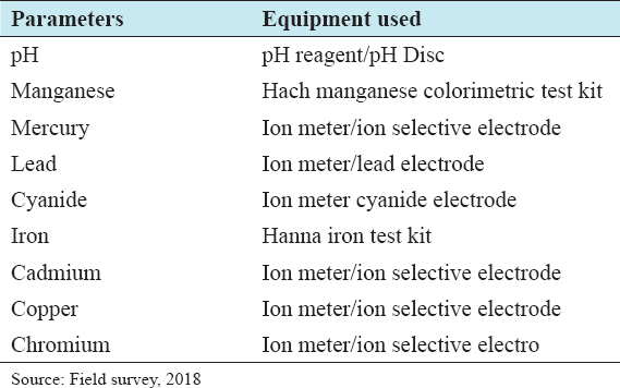 Several researchers have been carried out on heavy metals by scholars such as metals in street dust and agricultural soils.[9-12] Heavy metal toxicity is determined by route, pattern, and duration of exposure. Routes of exposure to heavy metals include (i) ingestion of soils, contaminated water, vegetables and fruits grown on contaminated soils, and animals that grazed on contaminated areas; (ii) inhalation of soil particles, dust, and fumes, and (iii) dermal contact.[13,14] Drinking of contaminated water and consumption of agricultural products are the major represents an important source of heavy metals ingestion.